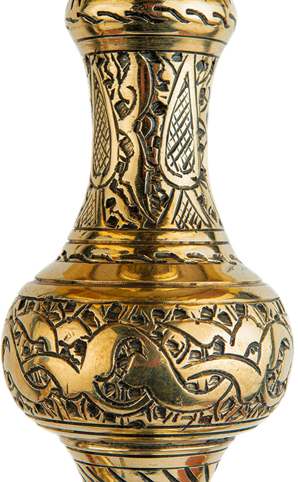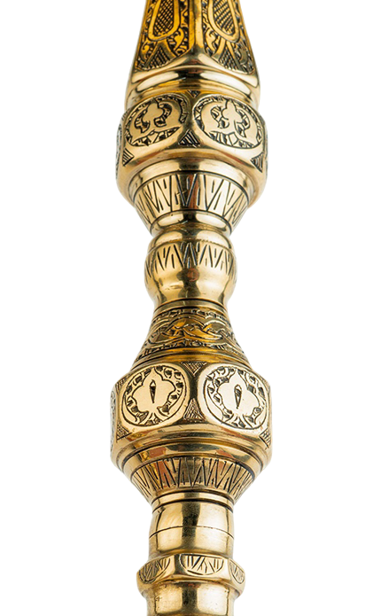 It is more than a stem; it is a manuscript in metal. Every curve of its solid brass body is wrapped in hand-engraved Arabic calligraphy, each section telling its own part of a greater narrative.