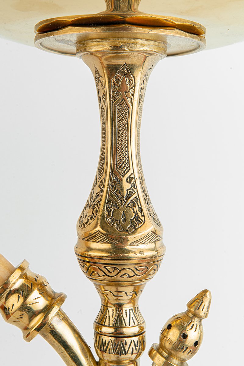 Its solid brass body retains the same bold silhouette and intricate engravings that define the Tryon, but condensed into a form that demands even greater precision from the artisan’s hand. Working in smaller dimensions leaves no room for error—each engraved line and polished surface must be perfectly executed to maintain the stem’s signature strength and elegance.